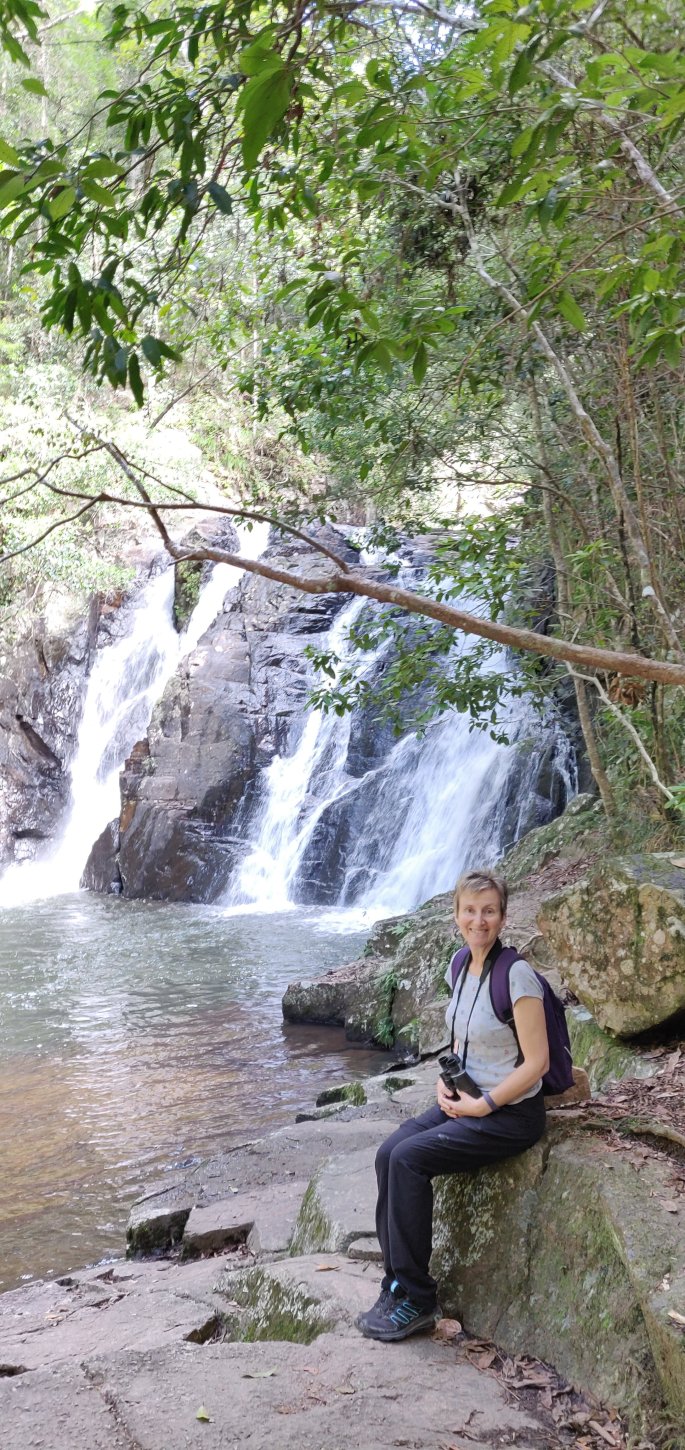 We walked down to the bottom of the waterfall. It was a strenuous walk for Dad because it was steep, strewn with rocks and roots and as he says himself he can be a bit doddery.