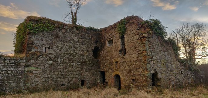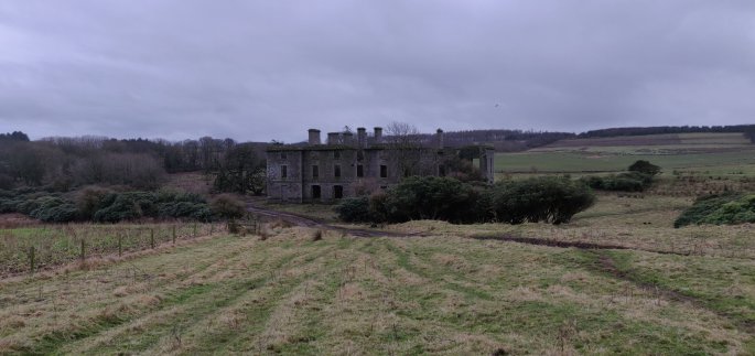 Looking it up afterwards, this is Strichen House designed in 1821 and it fell into ruin in 1956. I couldn’t find out much about what happened here. The front of the building supports a barn which seems so incongruous for such an atmospheric place.