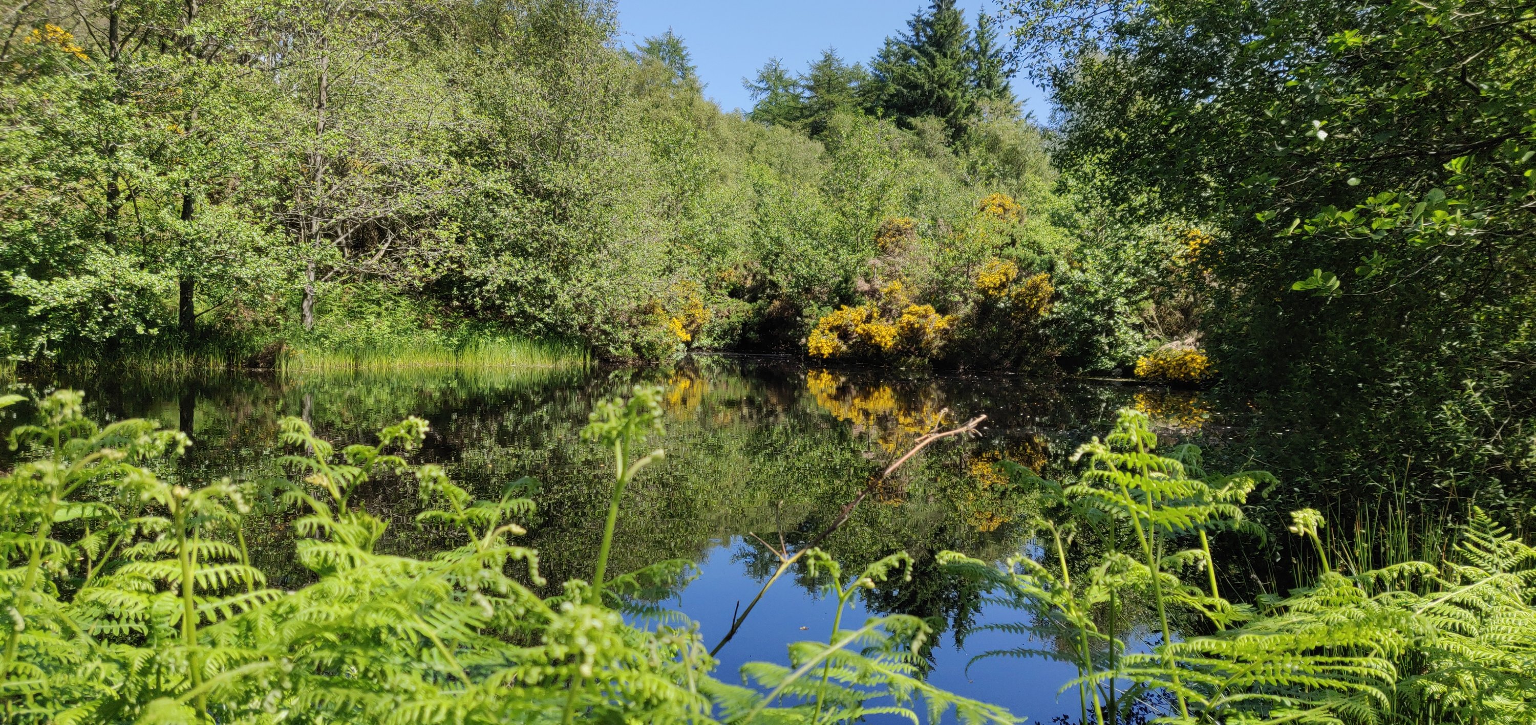 After this walk Daran took me to a secret place, near to Brimmond Hill, Aberdeen. I wondered where we were going. We had a confusung walk through gorse and broom. The broom is brighter but the gorse filled the air with a coconut scent. It was glorious, we decended into a boggy area where the ground bounced as we walked on it. We seemed to be going in a circle but then we came across a beautiful silent pool. The water was clear but dark with peat (I’m guessing). There were damsel flies and willow warblers in abundance. This was Daran’s secret place and it is beautiful.