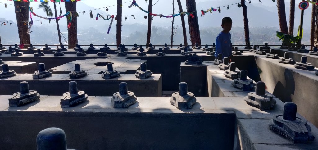 Back to our walk, chatting away we were climbing higher and entered the Subarneshwor Mahadev Temple, here was a different style of worship. A sort of maze and spectacular views. Priests/acolytes were wandering around and were very welcoming, making their offerings.