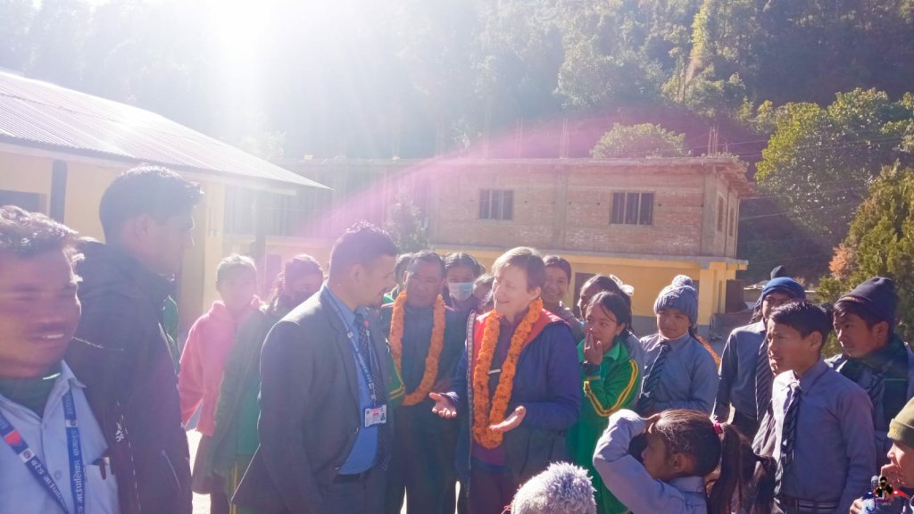 We had a formal introduction and this is not unusual in Nepal. Adorned with garlands, tikka on our foreheads (red for a joyous occasion, although I looked like I’d been hit with an axe) and a presentation from the teachers.