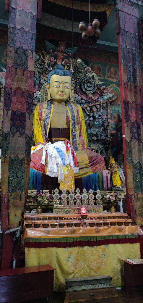 On the way back to the hotel I have short a visit to Ghoom Monastery, the poorest relation of many of the Monasteries I have seen and one of the largest housing up to 60 monks. Reading about it afterwards it’s had an interesting history built in 1875 by a Monk and astrologer, there are conflicts about Buddhist practices here and now its struggling financially. I was allowed to take pictures here of the Maitreya Buddha (I think he’s the future Buddha) seated and about 15 feet tall. There is a faded glory about this place and I left my donation in the hope it will help to retain it. The interior is tired looking much like the Buddha himself, so you must imagine what the others looked like in all their splendour and glory.