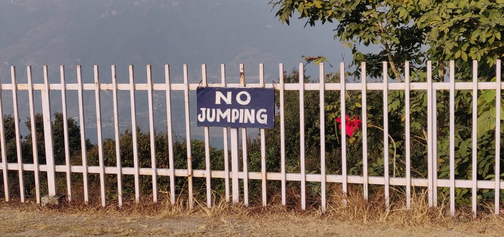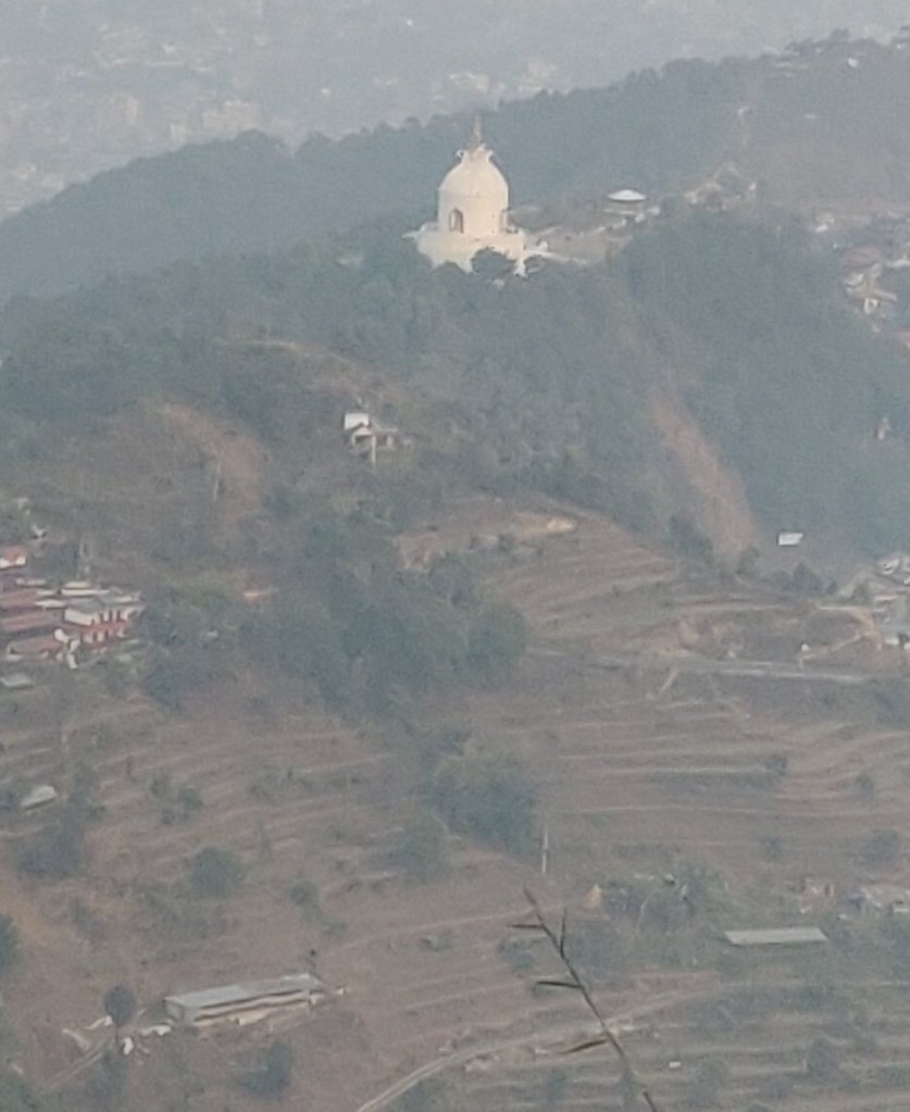The pagoda is actually a Buddhist Stupa. We walked around it and looked at Pokhara far below. I’m a tad concerned about the habits of the visitors if they need to put this sign up! Theres a sheer drop of some hundred feet the other side!
