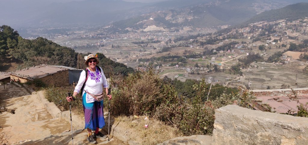 We stopped for lunch at this little shack and this is where our adventure nearly ended. Clare needed the loo and typically in the country they are little stone affairs that I can barely stand up in so Clare had no chance. She identified a spot nearby and began to descend some very deep concrete steps. She put her hand on a log to steady herself and it gave way. All I saw from where I was sat was her feet upended then she disappeared with a shout! I yelled too, and ran after her. I found her several steps down having landed in a heap, covered in dust and moaning. Sabin and Rajkumar were not far behind me. I managed to stop the men from trying to get Clare to her feet straight away After a few checks and a rest Clare was able to stand. A few cuts and bruises but, thankfully nothing more! Rajkumar cleaned her face and Clare, being a wound nurse sorted out the scrapes herself. The owner of the cafe was very upset about what had happened too. I think the best thing Clare did was to get up to continue walking the rest of the way, even Rajkumar said he would probably not carried on after that fall and said to Clare that she was strong.