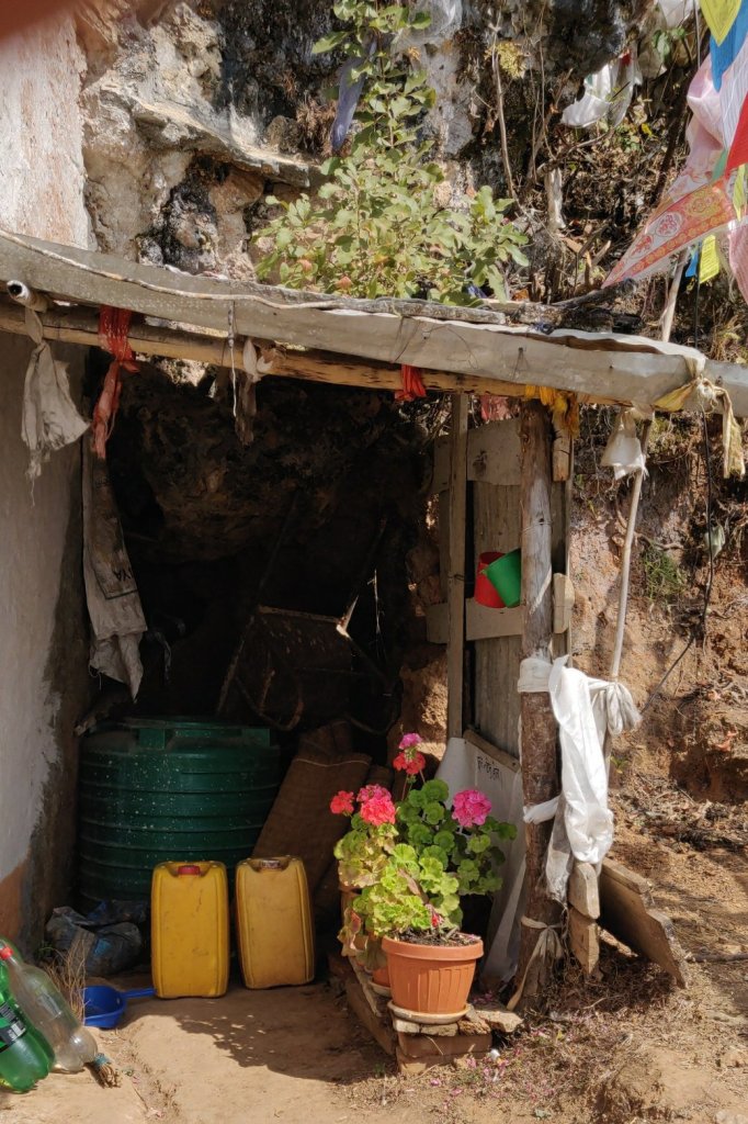 After a very filling breakfast, Kriti, her Father and I went on quite a walk to a Buddhist holy cave. It was a long walk with Roshi River valley on the south side and Sun Koshi river Valley the other. We could probably have see mountains had it not been so hazey. Impossibly high Pine and Rhododendron forests interspersed with small fields. We took a number of foot tracks too and finally made it to the entrance of our destination Yarinag Guru Duphug Tongsum Kundag at Temal. This is a Rimpoche’s (Buddhist Monk of high standing) place and very holy. We descended the newly made steps down the side of the hill to see the small cave and stone Rimpoche’s foot (a natural rock formation that looks like a foot. Unfortunately much of it was obscured by hundreds of prayer scarf’s. It was surprisingly crowded when we got to the holiest part. Candles, incense, people! All a bit too much for me. Kriti and her father are devout and were saying the mantra as they went around. Kriti did try to teach it to me but the only bit I can remember now is Om!