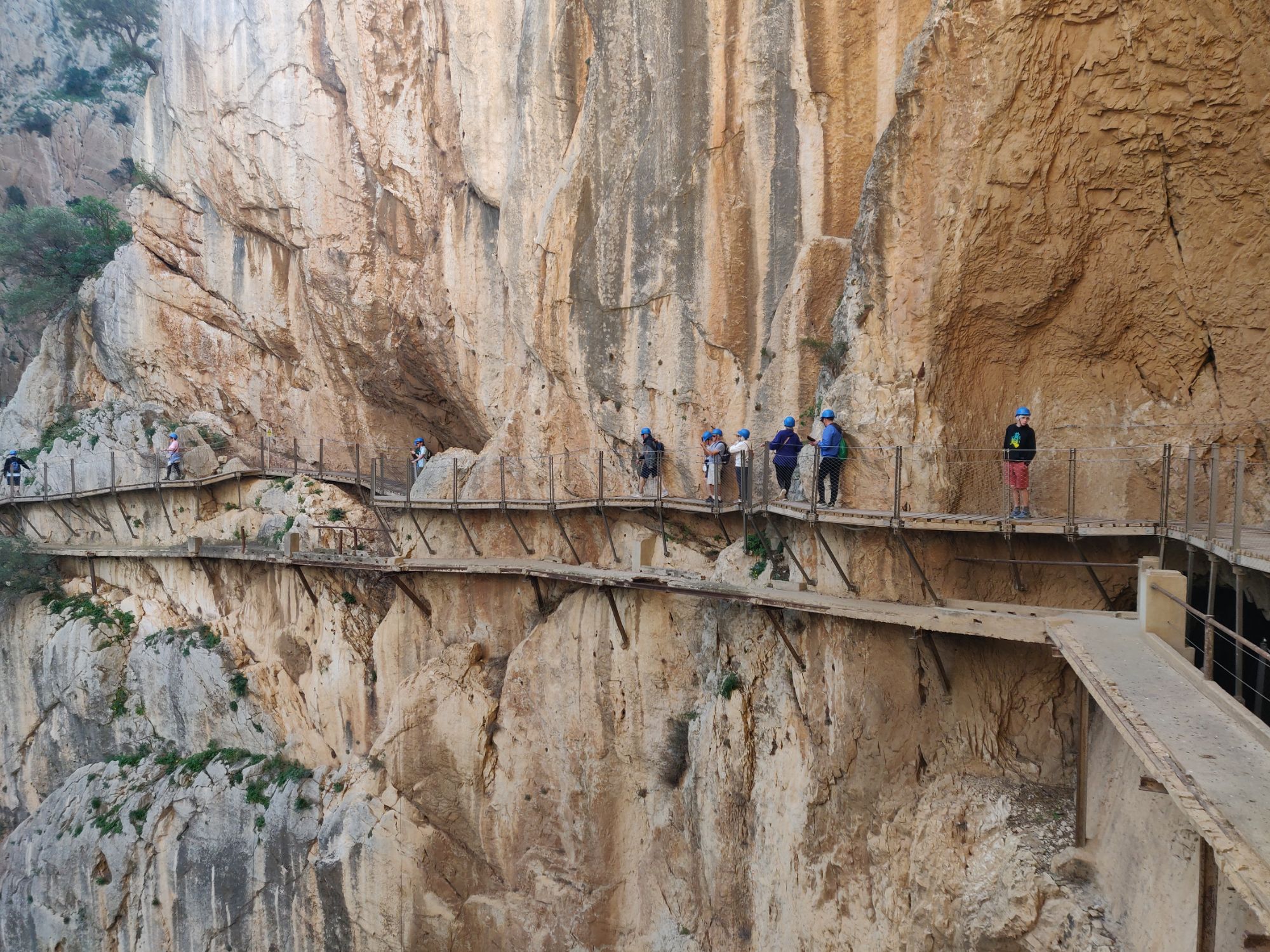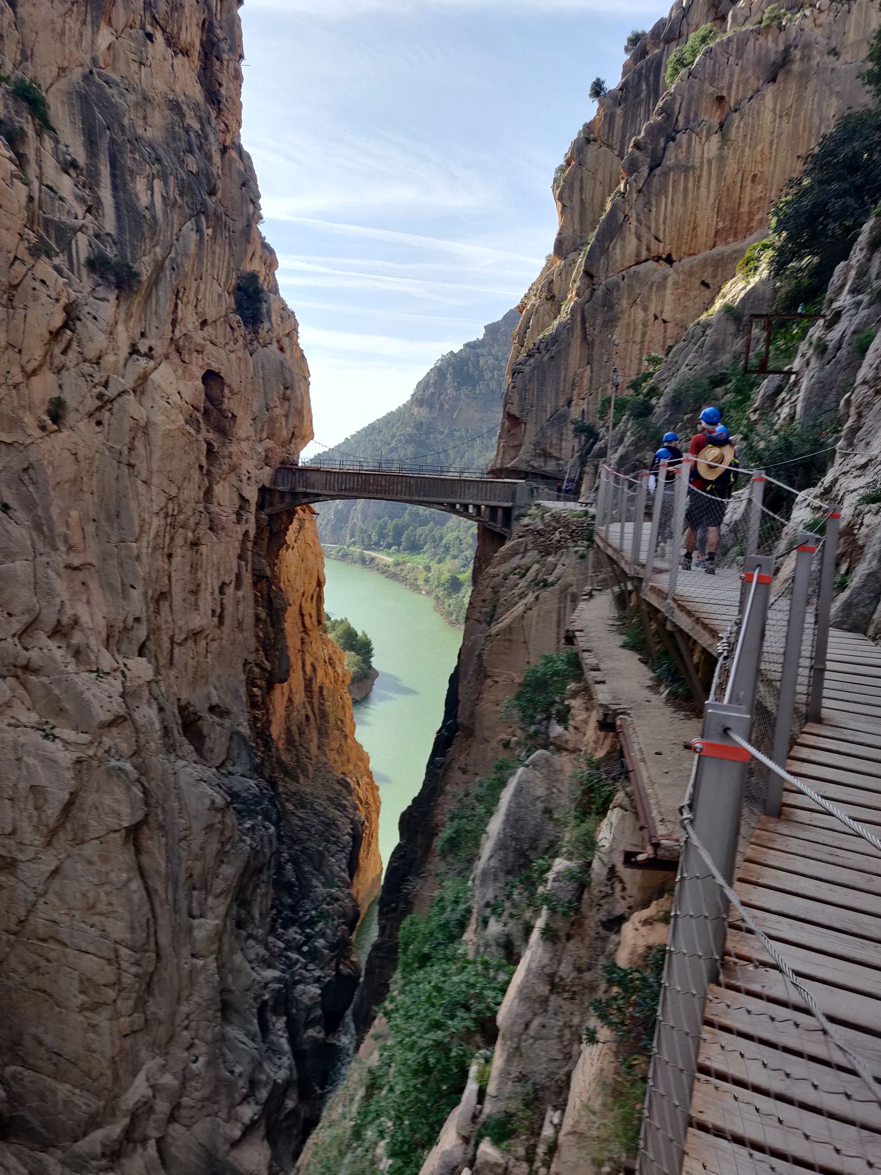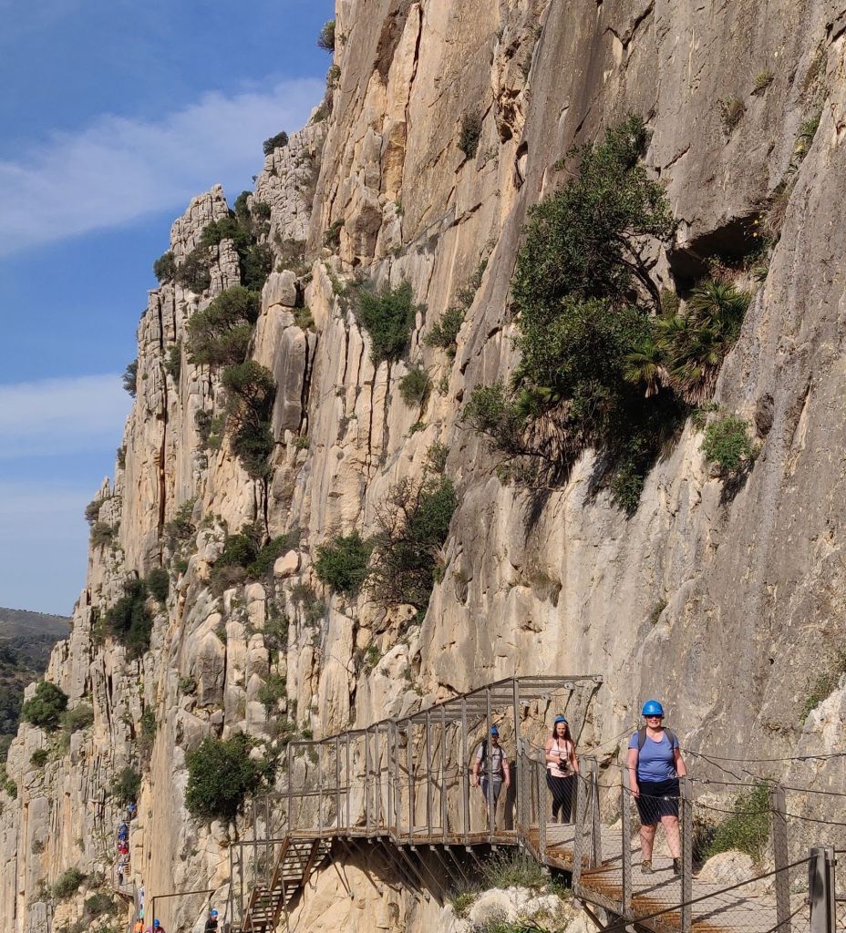 The Caminito del Rey is an aerial trail built in, onto and hanging off the walls of the Gaitanes gorge above the Guadalhorce river. It’s about 7K in length.