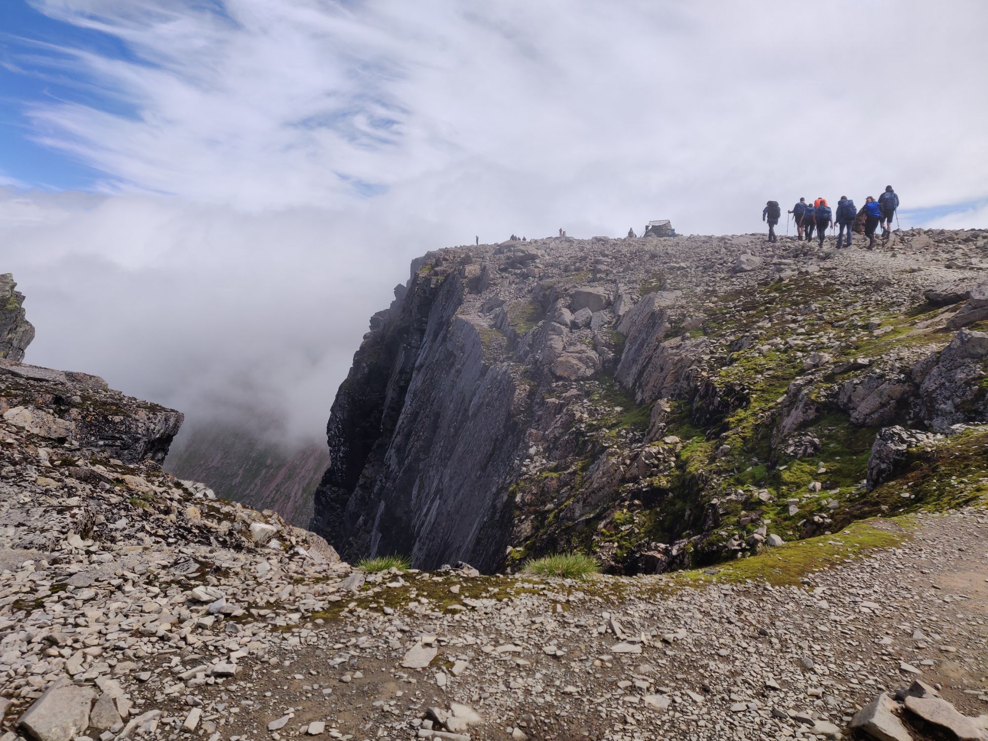 Then it started getting colder gradually and I put my jacket and knitted hat (from Nepal) on. All I can say is it’s relentless and I’m amazed people walk up in light shoes and no kit at all. I had come well prepared, I including brushing up my map reading skills in case the cloud at the top as thick. I was told that there will be plenty of people to find my way down but I had visions of lemming like people blundering of cliffs so, it was better to be prepared.