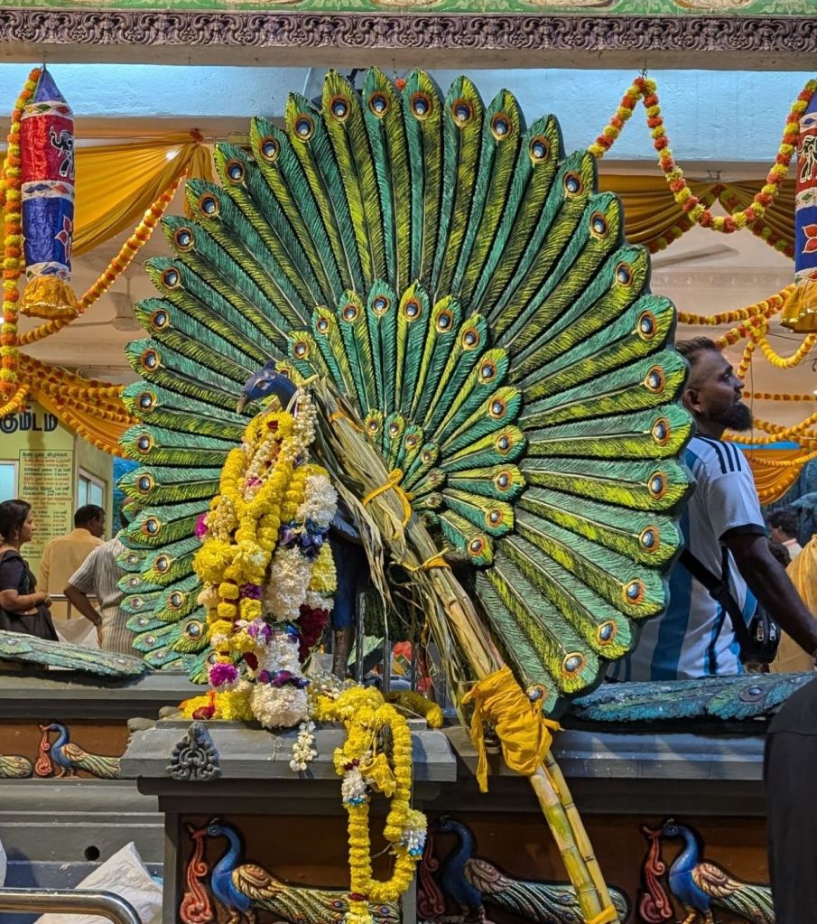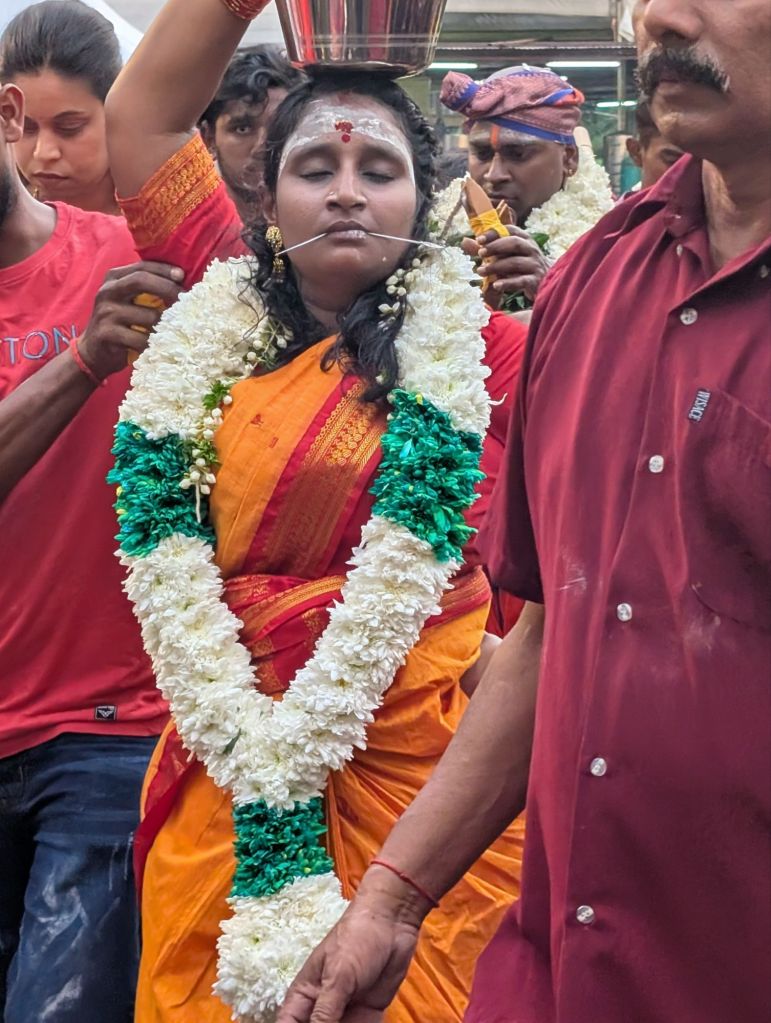 We met the friend of one of our hosts who offered to take us the celebration of Thaipusam. Offerings and sacrifice is made to Lord Murga god of War and Wisdom (Hmm do those two go together?) during this celebration.