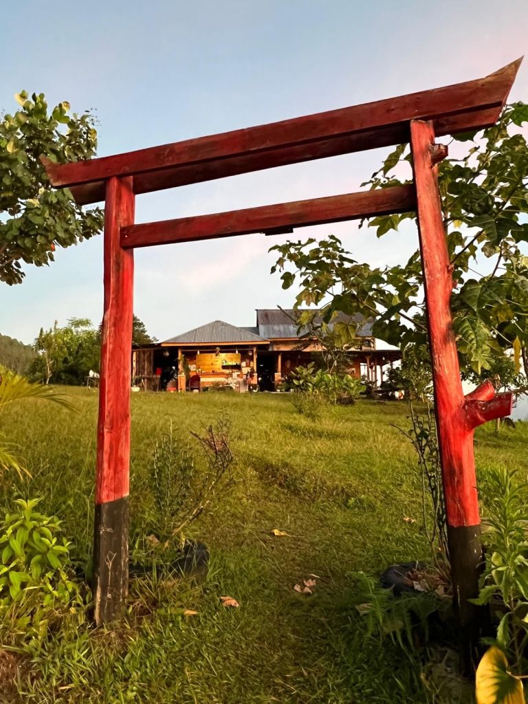 He is an organic farmer like the rest of his family, growing watermelon, pineapple, coffee and so on. His place is idyllic. He has one person to help farming (he was too shy to sit with us at dinner) and Efrida who sometimes comes up to cook. We helped with the washing up of course!