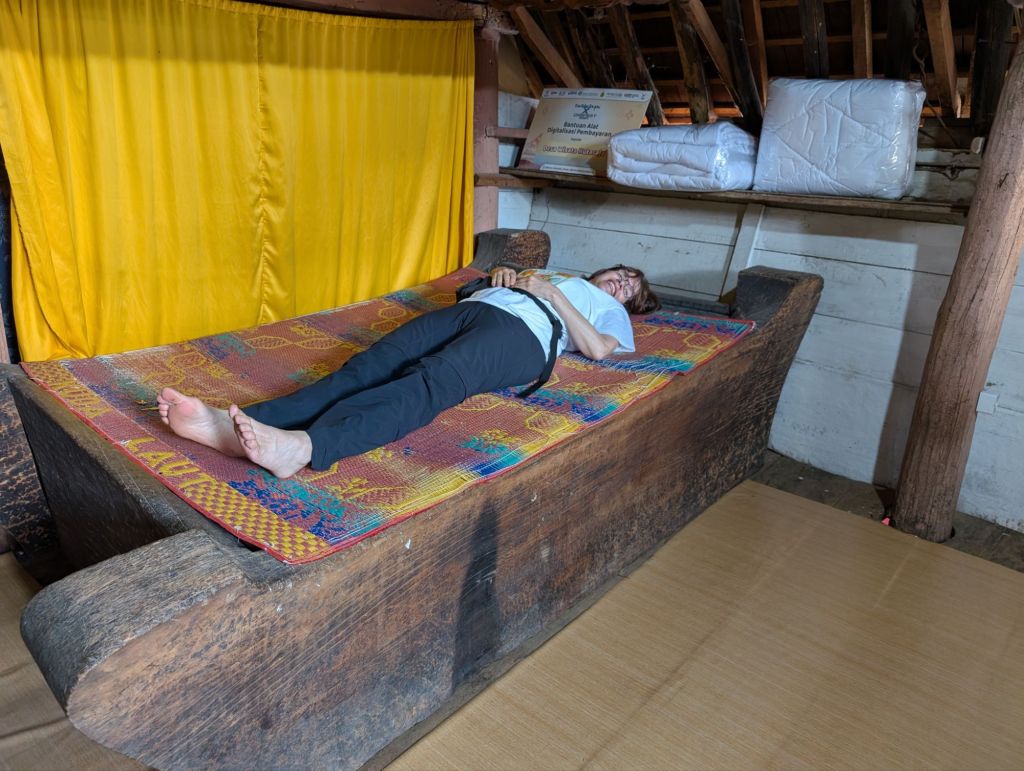 Many people in Samosir live like Efrida (I’ve been spelling her name wrong) to a greater or lesser degree. Very few will get to experience the rest of the world, Efrida went to Bali and worked as a teacher in a primary school there ( just wait to see her with children later), which probably explains her no nonsense attitude. A couple of her sisters live and have partners in Europe.