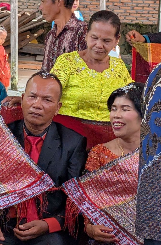 The event was outside a church and we were watching this very serious woman, she was possibly in her forties and had the most stern expression, we thought she must be some kind of dignitary because she was giving envelopes to people. She didn’t smile at all. We then found out this was a wedding and second marriage for both parties, theceremony was not actually the official marriage, which had happened about six months before in church but, a Batak wedding ceremony.