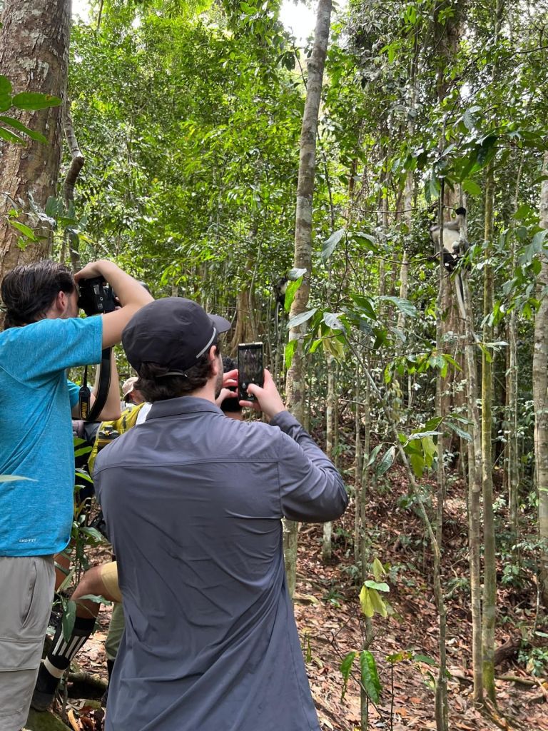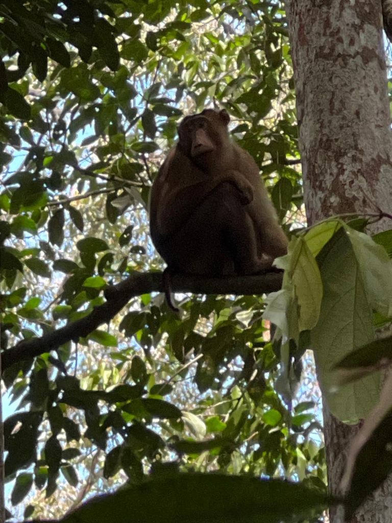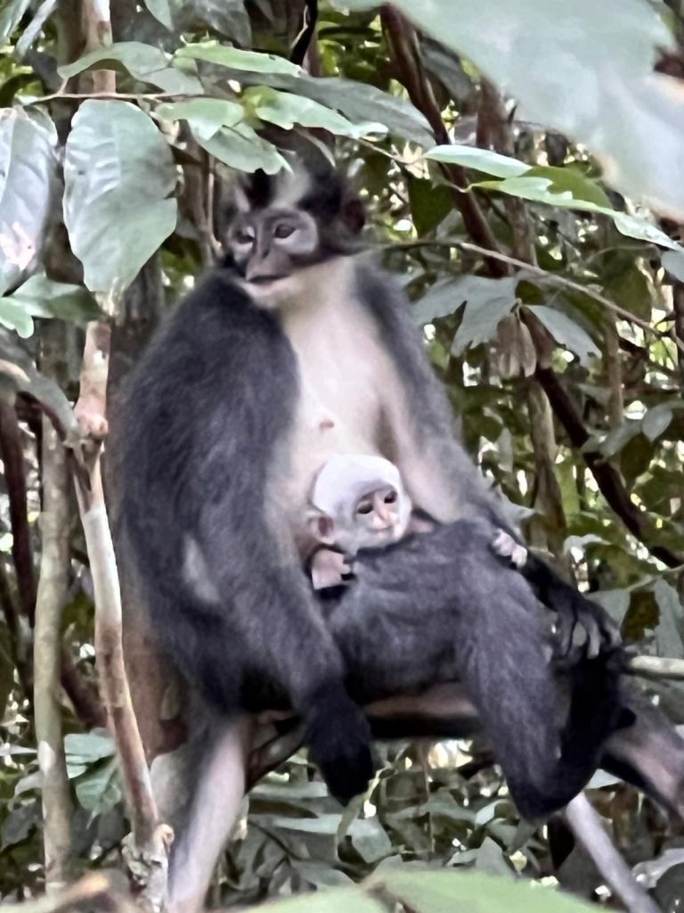 All that said we did see Orangutan high up in a tree and later after losing some of the crowd as we walked on, several Thomas’s Langure came to investigate us. White Handed Gibbons were also playing around with the group. As we watched another tour group of humans arrived.