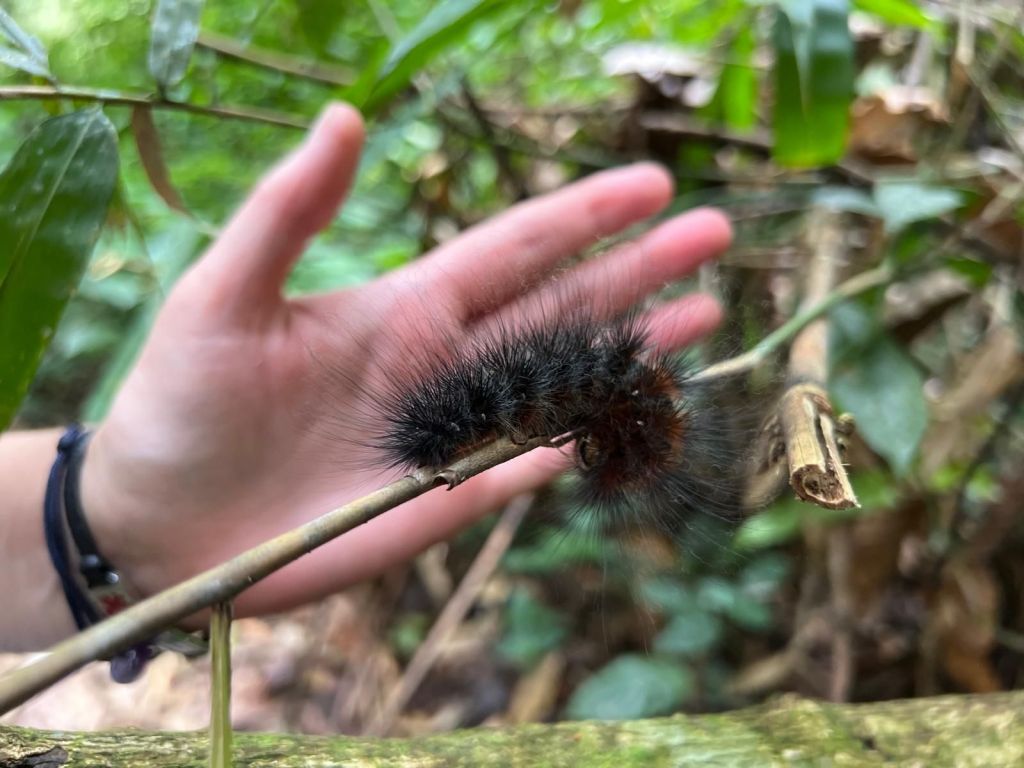 You have been very lucky with some of the animals spied. That caterpillar reminds me of when blonde Ellie used to do her eyebrows too dark 😂 and what fun in the river?! Regarding the loo … there’s a few blokes I know in the UK that would benefit from one so airy!!