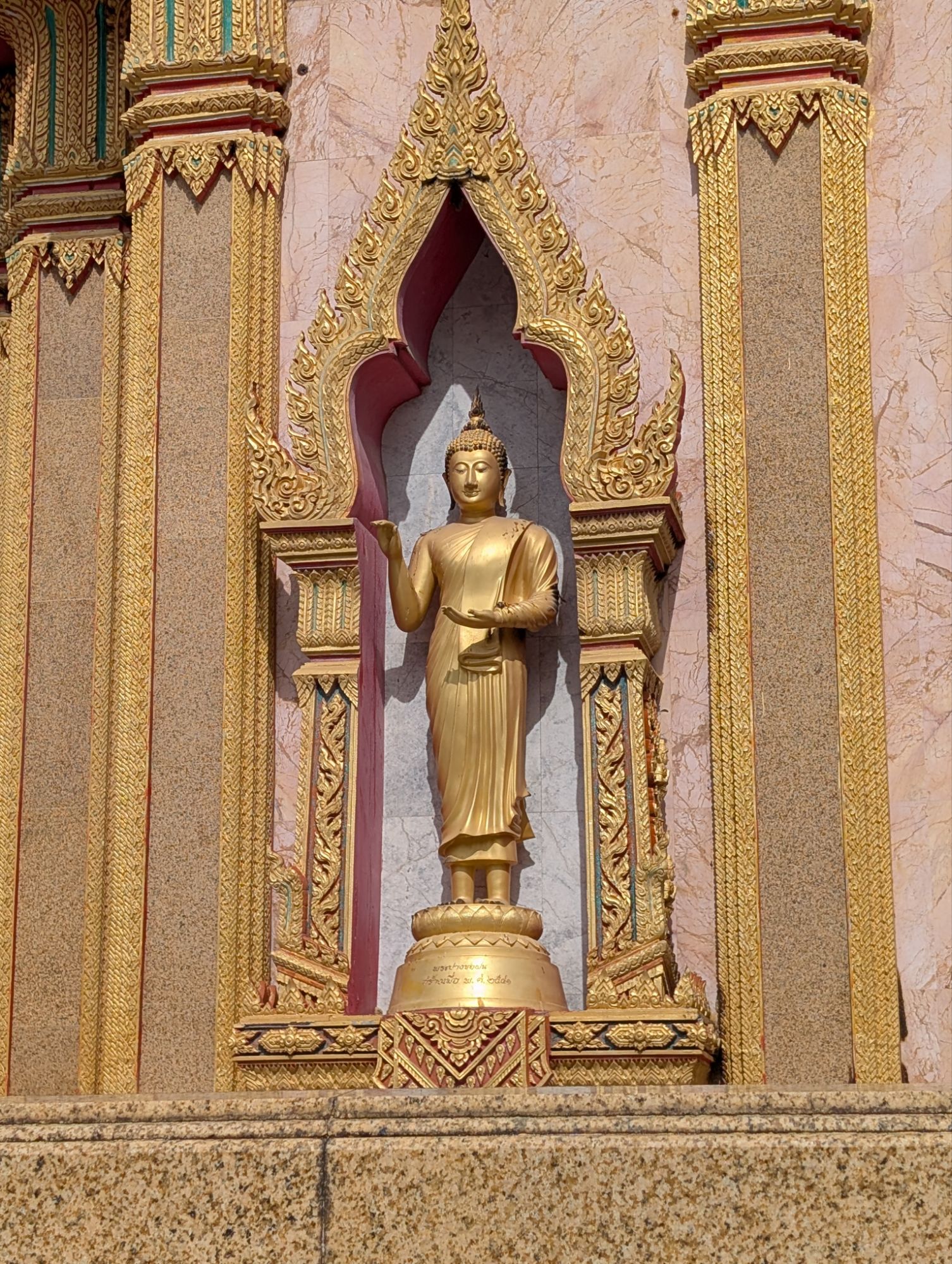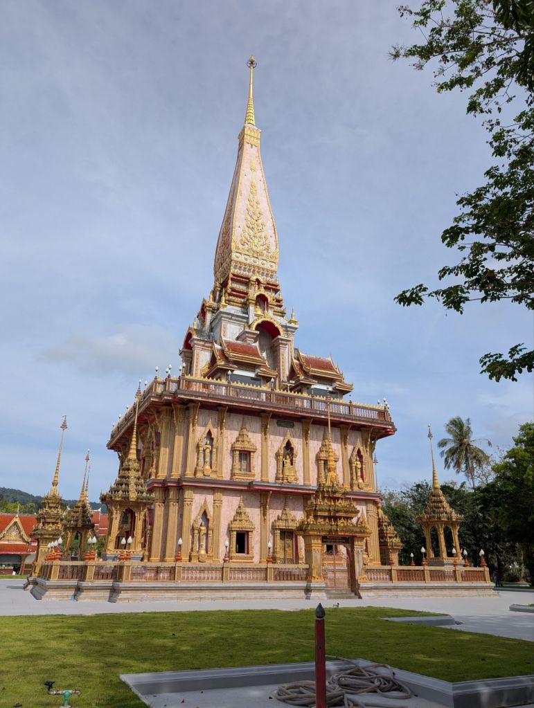 We visited Wat Chalong Temple, a Buddhist Temple. Thai’s follow Theravada Buddhism (which combined with Hindu and Chinese folklore influences) giving a different feel to what I saw in Nepal. Extraordinary opulent interiors. Even the stupas (mounds containing relics) are a different shape and some have gold on them. (In Nepal and Sikkim they were white and more rounded) Ninety percent of the Thai population is Buddhist.