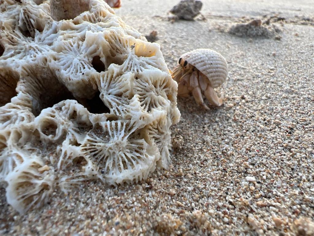We came to a seaside village with a huge hotel that we walked through to get to the beach area! White sand in-between clumps of what looked like rock but are actually dead coral. Before you think global warming, it’s not. Its because the Island is lifting out of the sea, stranding the coral.
