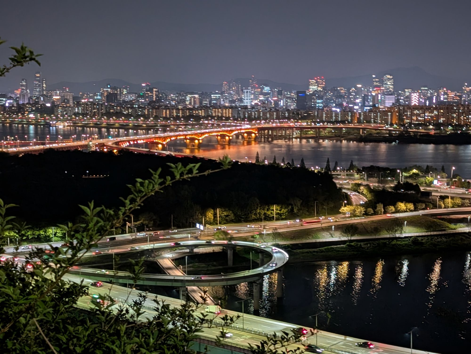 We met with our next host Singhu at one of the rail stations and we walked along what I thought was a man made river, Cheonggyecheon. It is actually a natural steam but, it was used as part of the early sewage system until the mid 20th Century when it was filled with concrete and became an elevated highway.