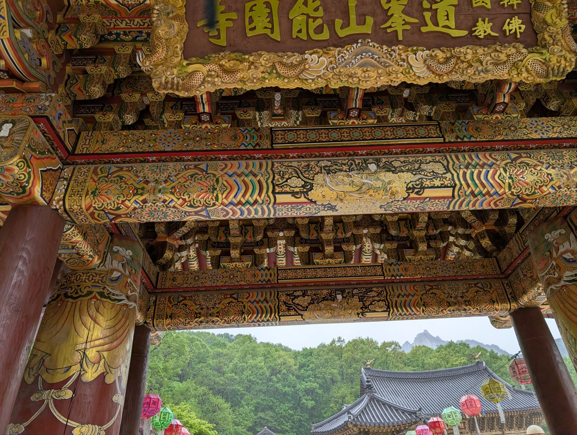 The next day we walked to a rather pretty Dobongsa Temple on the edge of Bukhansan National Park. The down side, it was chucking it down with rain and neither of us had suitable footwear. Our feet were wet and cold by the time we returned. We went shopping so I had something else to put on instead of flipflops!
