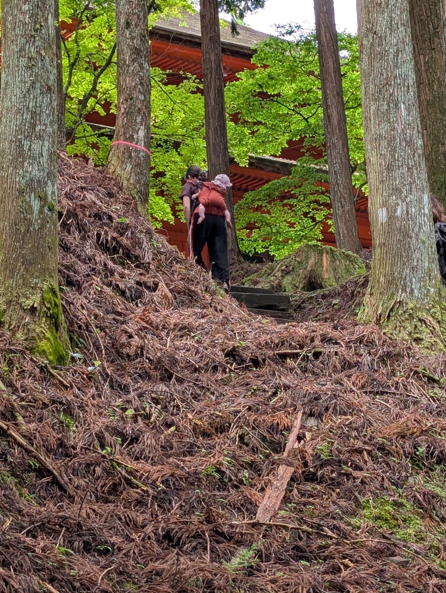 Then we walked over the peak and down the other side. As we walked there were some very loud Americans behind us. Tatjana told them it was a pilgrimage trail and to get the authentic Japanese effect was by being quiet!!! It was put somewhat more diplomatically than I’ve just described it. It worked for a while!