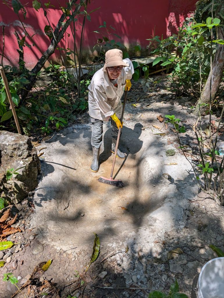 The work was physical and hot. I didn’t quite get what was required of me at first and Gustina who is the keeper of the birds tutted a bit ( universal in any language). I soon realised what she needed and really it was like gardening, cleaning the droppings off stones onto the earth and clearing up food that falls onto the floor. The next day I was like a thing possessed! Gustina at the end of the day said ” you are a strong woman” and then sang my praises at dinner and so Jayne now calls me ‘teachers pet’, hahaha! Jayne got sacked from birds after one hour! (No not really, she had a cunning plan).