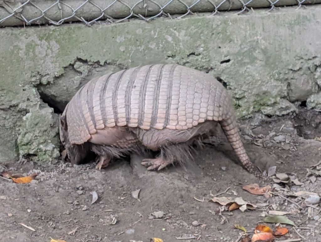 In his enclosure are two armadillos, (they love an egg for breakfast) and a very grumpy tortoise that I nicknamed Victor Meldrew. He would charge at us so, one of us would have to keep him occupied while the other cleaned or put food down. I would lead him away then step either side of him and walk in the opposite direction, he seemed to think I had vanished into thin air. It’s strange he doesn’t chase the Capybara.