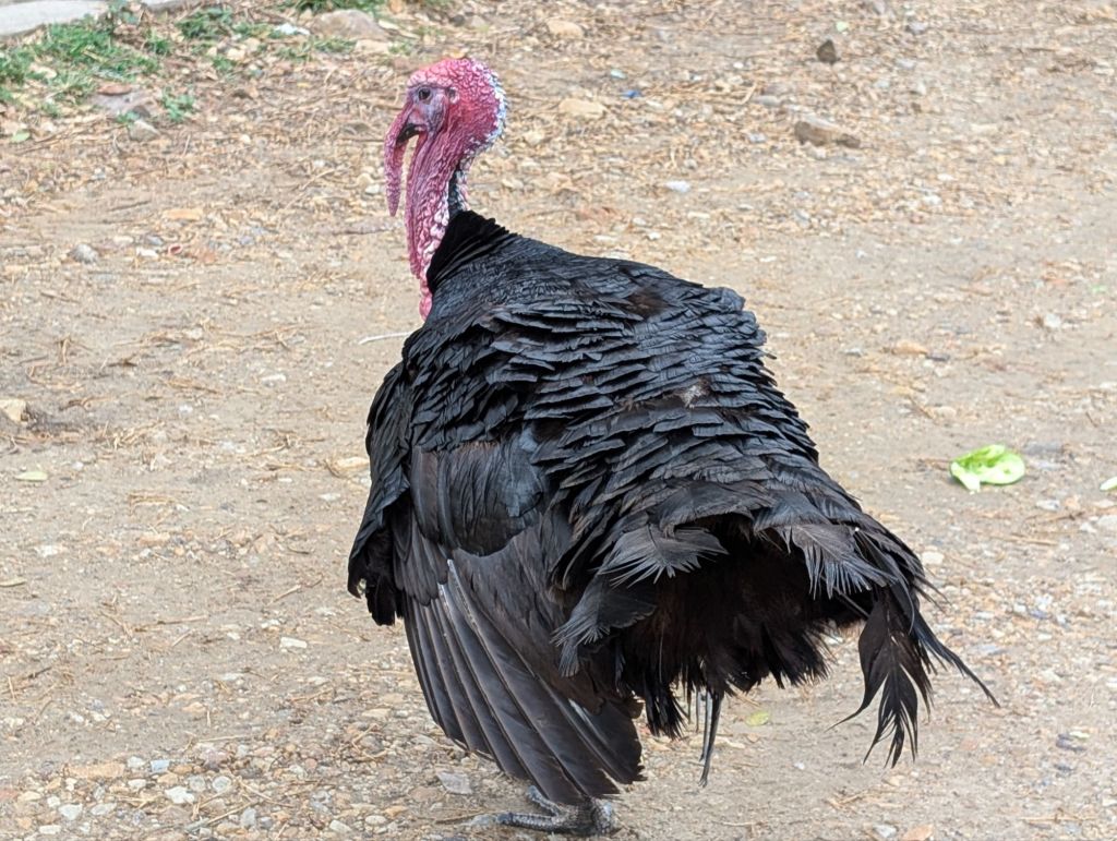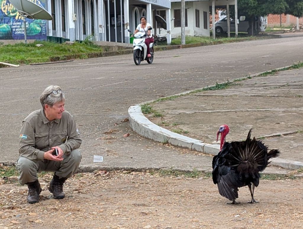 En route we collected a passenger who I think was Guadeloupe’s brother. In a small village we stopped for fuel and while waiting Jayne was courted by this rather resplendent turkey, just look at the colour change in it’s neck