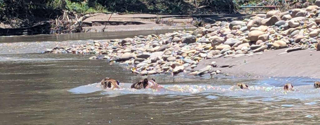 The trip back was up river so took longer but it was so much calmer. We saw a family of Capybaras swimming.