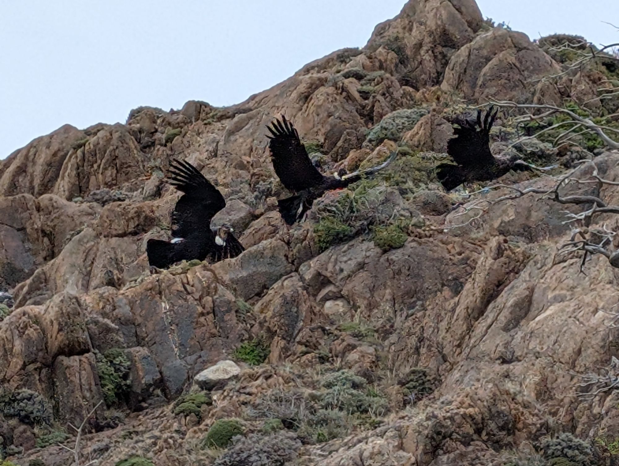 Condors are huge with and average wingspan of over 9 feet. They look very like vultures and are related to them filling the same niche by feeding on carrion. Although we saw Condors again they were always a long way off or very high up.