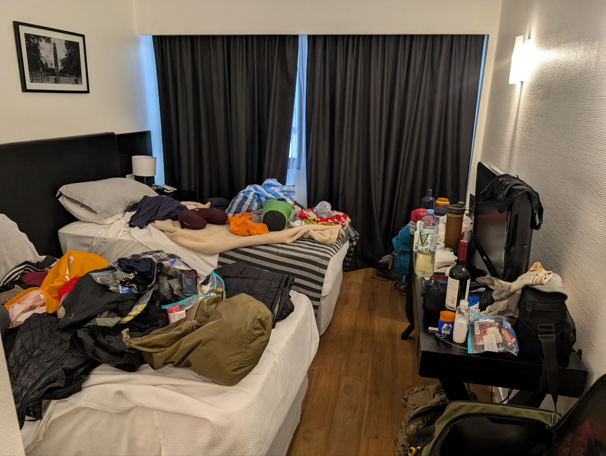 I just thought I’d put this picture in to show the chaos we brought and took home with us! We bought only a couple of items each to take home although I seem to have ended up with a lot of rehydration salts, some of which are fluorescent green when mixed with water! They taste disgusting too!